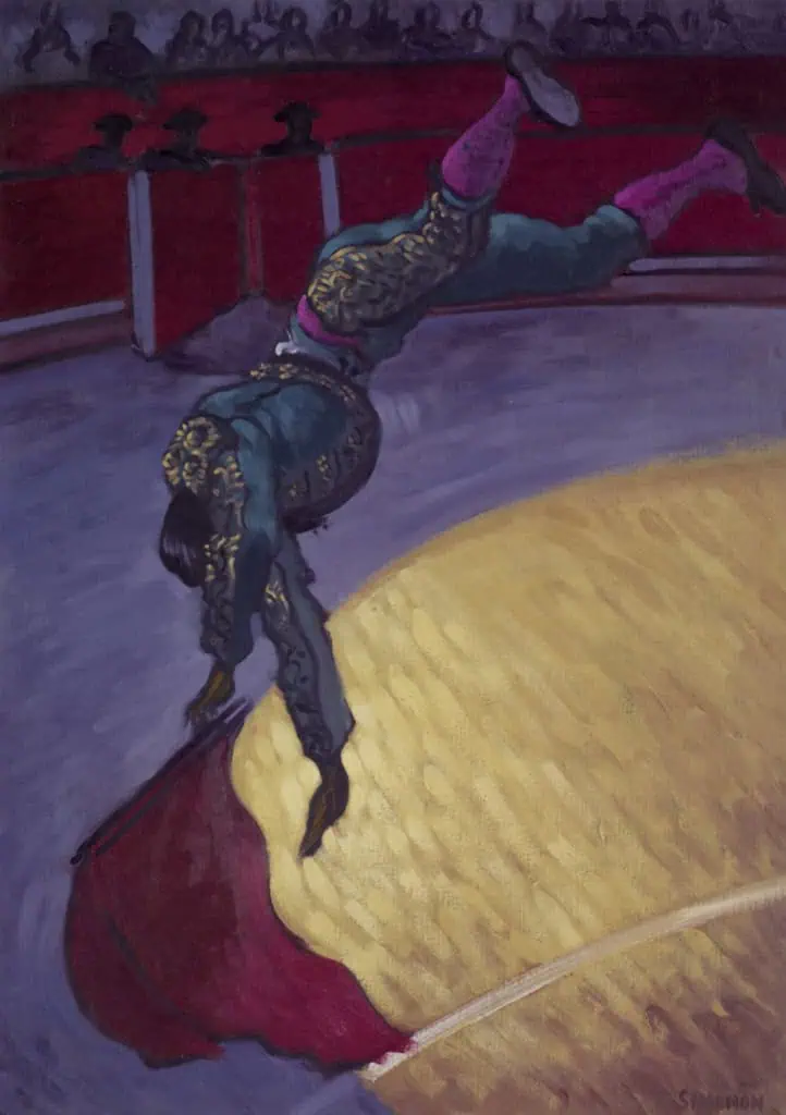 The work for this show was painted in Simonon’s London studio after several months spent studying and sketching bullfights and matadors at first hand. He reached a point where he was “no longer a slave to reality and could take liberties” with his subject matter. The result is a group of strong images revealing both the ceremony and fragility of the world of the matador.