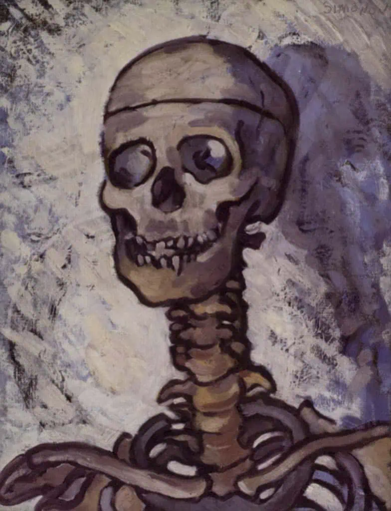 He was at the Plaza de Toros Las Ventas in Madrid when the famous matador, Antonio Barrera, was tossed in the air repeatedly by the bull he was fighting. The wounded man was carried to the side of the arena by his fellow matadors (crudilla), wrapped in his cape. The drama of this scene reminded Simonon of ‘Deposition’ pictures by artists such as Carravaggio and Titian, and inspired his own series of paintings on the theme. The exhibition also contained a number of ‘Still Lives’ depicting objects which hold an element of religious symbolism.